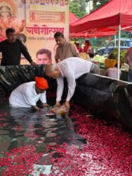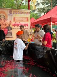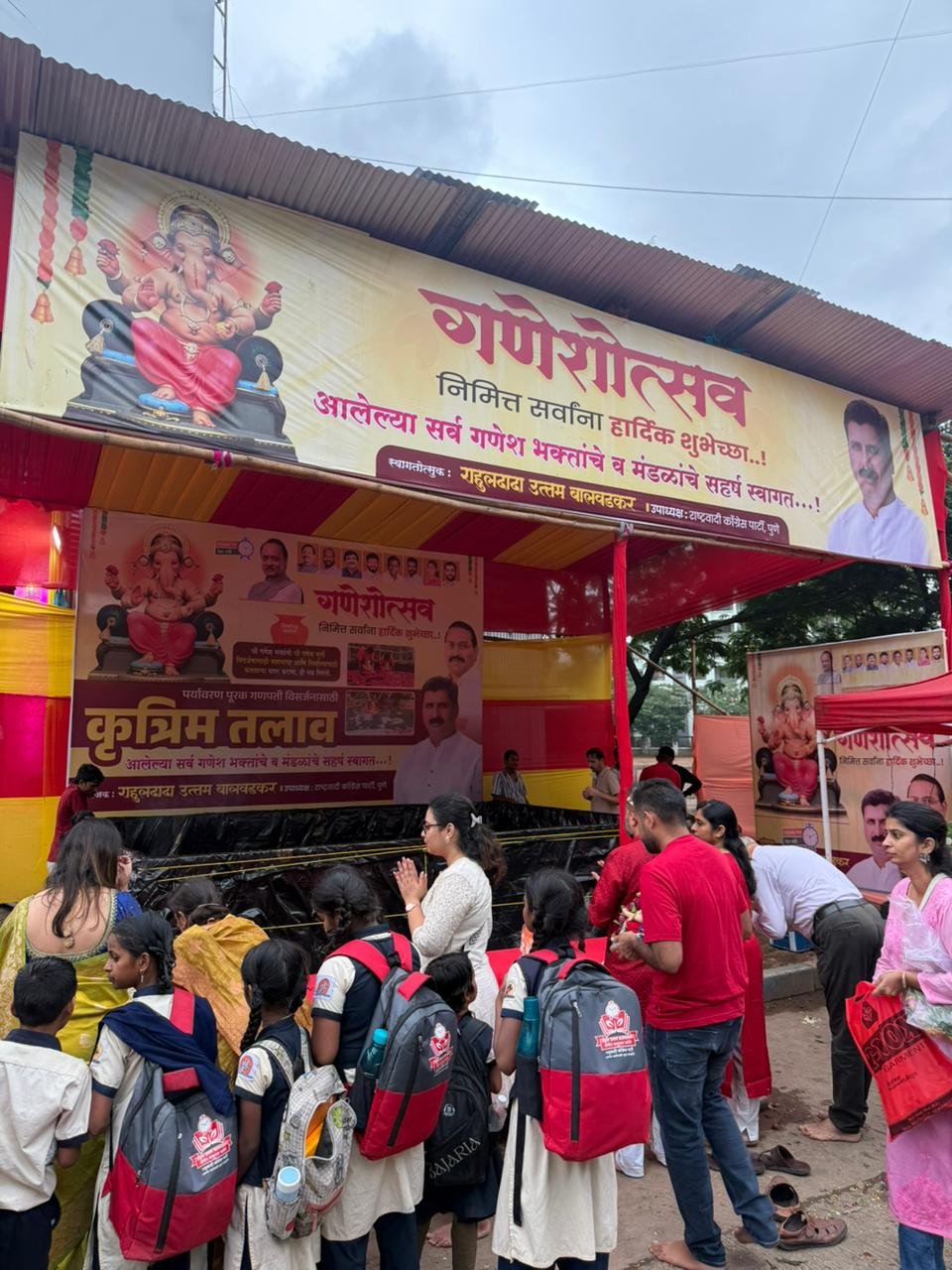 गणेशोत्सवाच्या पार्श्वभूमीवर राहुल दादा बालवडकर जनसंपर्क कार्यालय, दसरा चौक, बालेवाडी येथे खास गणपती विसर्जन तालाव उभारण्यात आला आहे. पर्यावरणपूरक पद्धतीने गणरायाचे विसर्जन व्हावे या हेतूने हा उपक्रम राबविण्यात आला असून, पहिल्याच दिवशी नागरिकांचा उत्स्फूर्त प्रतिसाद मिळाला.
