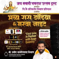 रंगीबेरंगी पोशाखात सजून आलेल्या सहभागींचा उत्साह, दांडिया आणि गरब्याच्या ठेक्यावर रंगणार आहे. “नवरात्रीचा उत्सव, आपुलकीचा संगम” या घोषवाक्यासह हा कार्यक्रम पार पडणार असून मोठ्या प्रमाणात परिसरातील नागरिक सहभाग घेणार आहेत.