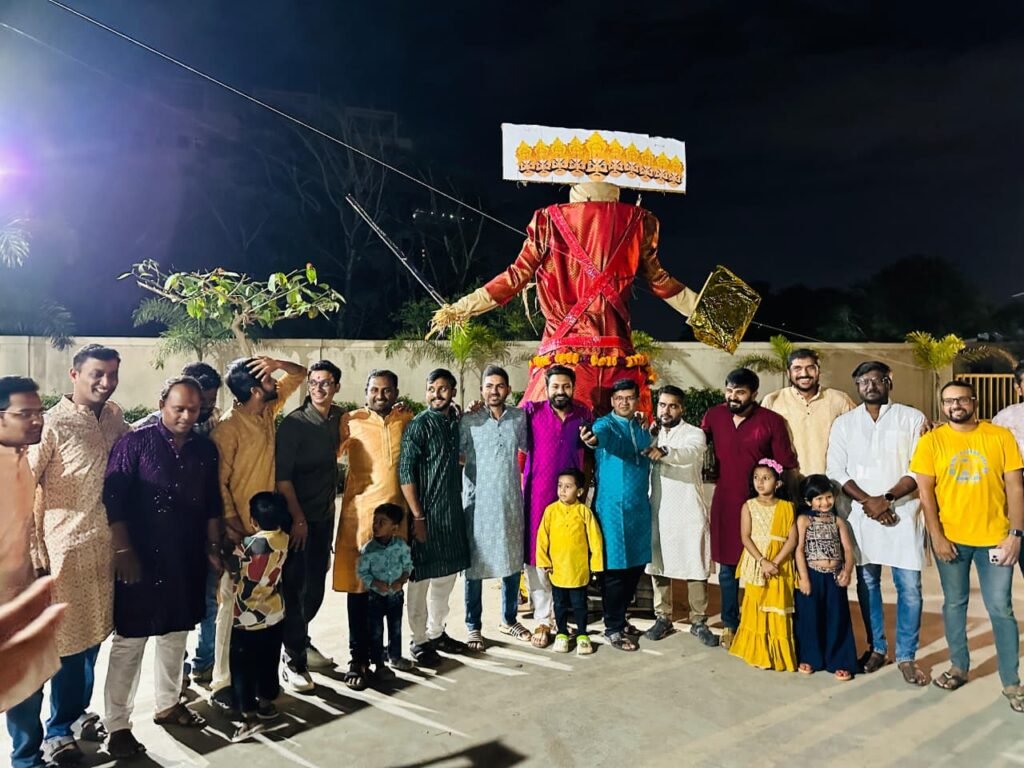 बालेवाडी येथील मंत्रा मोनार्क सोसायटीमध्ये दसऱ्याचा सण अत्यंत उत्साही वातावरणात आणि आनंदात साजरा करण्यात आला. या प्रसंगी सोसायटीच्या सांस्कृतिक समितीने तब्बल १२ फूट उंच आणि आकर्षक असा रावणाचा पुतळा तयार केला होता. या सर्जनशील पुतळ्याने सर्वांचे लक्ष वेधले.