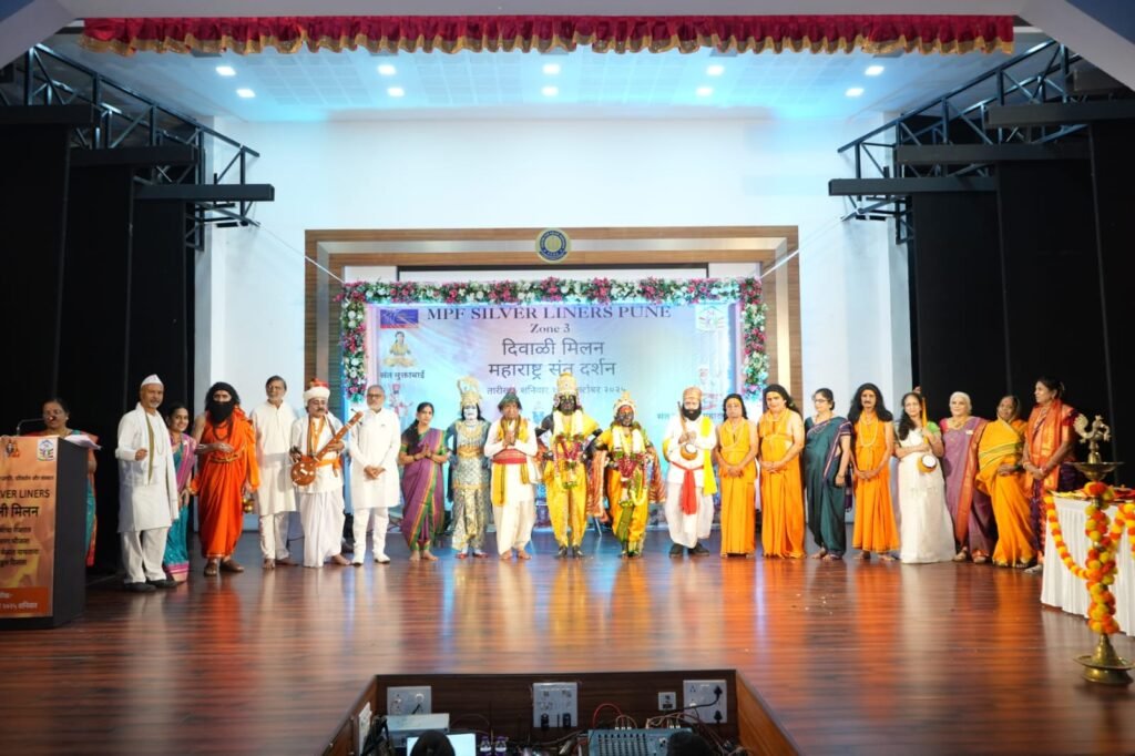 माहेश्वरी समाजातील सिनिअर सिटिझन्स मंडळ MPF Silver Liners तर्फे दिवाळी मिलनाच्या निमित्ताने “महाराष्ट्राचे संत दर्शन” हा अद्वितीय सांस्कृतिक कार्यक्रम आयोजित करण्यात आला. भक्ती, संगीत, नृत्य आणि नाट्यरूप सादरीकरणाने सजलेल्या या कार्यक्रमाने उपस्थित प्रेक्षकांना आध्यात्मिक आणि सांस्कृतिक प्रवासाचा आनंद दिला.