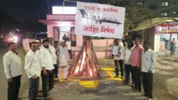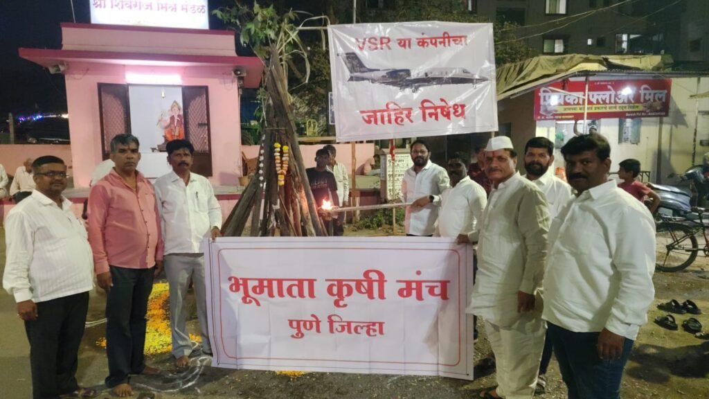 भूमाता कृषी मंचच्या वतीने बालेवाडी येथे राज्याचे उपमुख्यमंत्री अजित दादा पवार यांच्या विमान अपघात प्रकरणातील VSR कंपनीच्या विमानाचे प्रतीकात्मक दहन करण्यात आले. यावेळी संबंधित कंपनीचा तीव्र शब्दांत निषेध व्यक्त करण्यात आला.