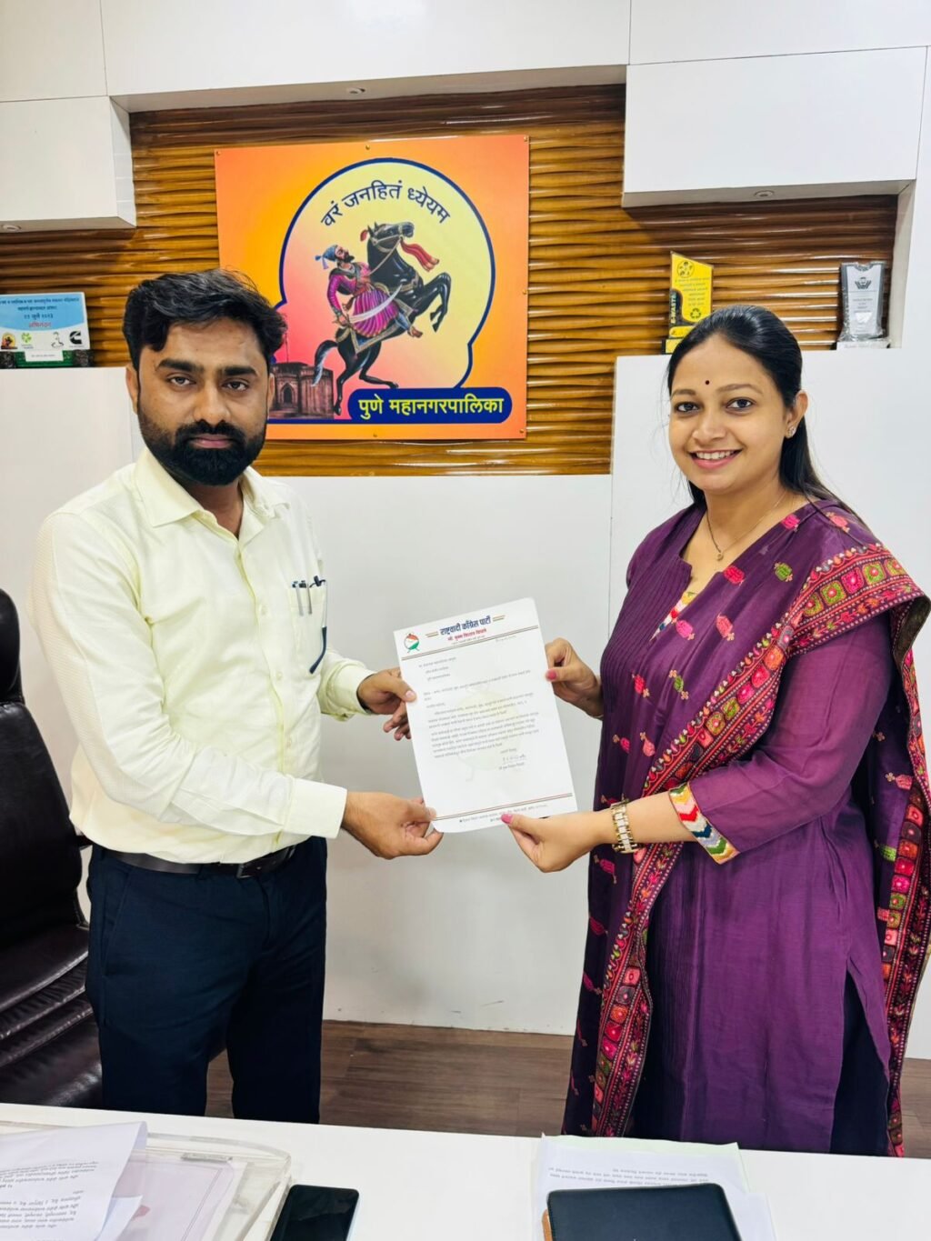 बाणेर, बालेवाडी, सूस, महाळुंगे परिसरातील नाले व पावसाळी लाईनची साफसफाई व्हावी म्हणून राष्ट्रवादी काँग्रेसच्या नेत्या पुनम विशाल विधाते यांनी क्षेत्रीय कार्यालयातील सहाय्यक आयुक्त गिरीश दापकेकर यांची भेट घेत निवेदन दिले. पावसाळ्यात नागरिकांची गैरसोय होऊ नये यासाठी त्यांनी पुढाकार घेतला आहे.