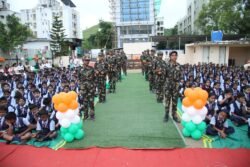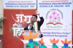 चैतन्य विद्या प्रतिष्ठानच्या पेरीविंकल इंग्लिश मीडियम स्कूल अँड ज्युनिअर कॉलेजच्या सूस शाखेमध्ये शुक्रवार दिनांक १५ ऑगस्ट रोजी स्वतंत्र भारताचा 79 वा स्वातंत्र्य दिन ऑपरेशन सिंदूर हा विषय घेऊन जल्लोषात साजरा करण्यात आला. पेरीविंकल प्रशालेच्या मुख्याध्यापिका सौ.निर्मल पंडित यांच्या उपस्थितीमध्ये कदम तालावर पाहुण्यांचे स्वागत करण्यात आले. त्यानंतर झेंडा पूजन करून पाहुण्यांच्या हस्ते ध्वजारोहण करण्यात आले.